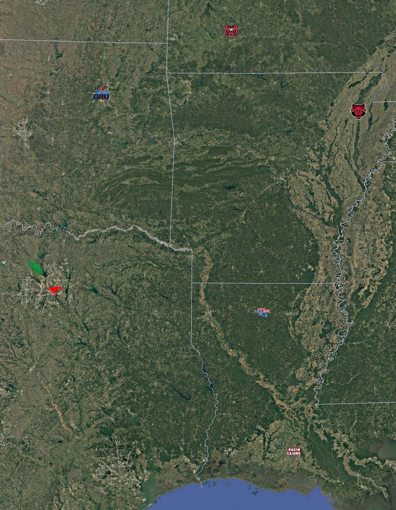 Arkansas State, Louisiana, Louisiana Tech, Missouri State, North Texas, Oral Roberts, SMU, Tulsa