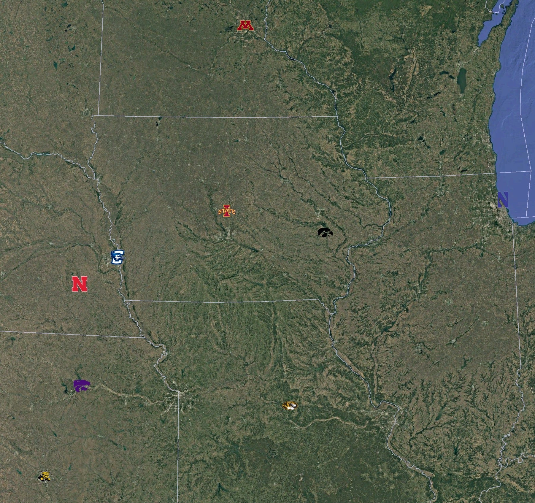 Creighton, Iowa, Iowa State, Kansas State, Minnesota, Missouri, Nebraska, Northwestern, Wichita State