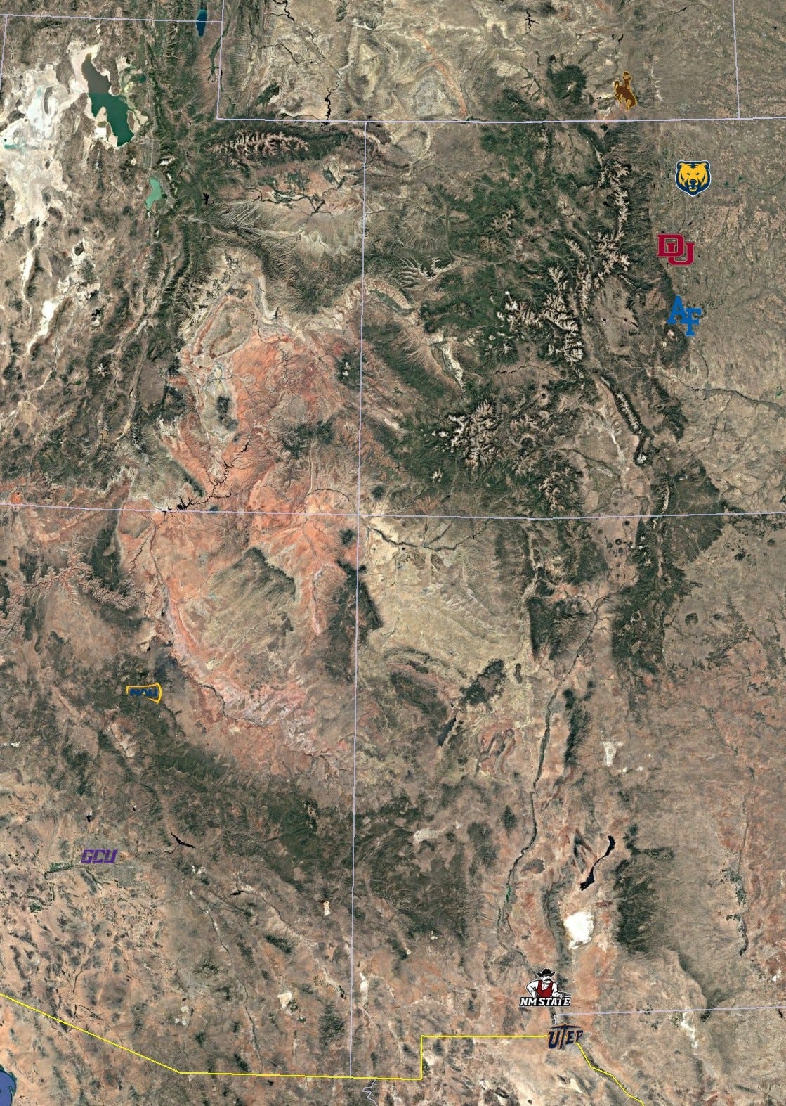 Arizona State, BYU, Colorado, Colorado State, New Mexico, UNLV, Utah, Utah State