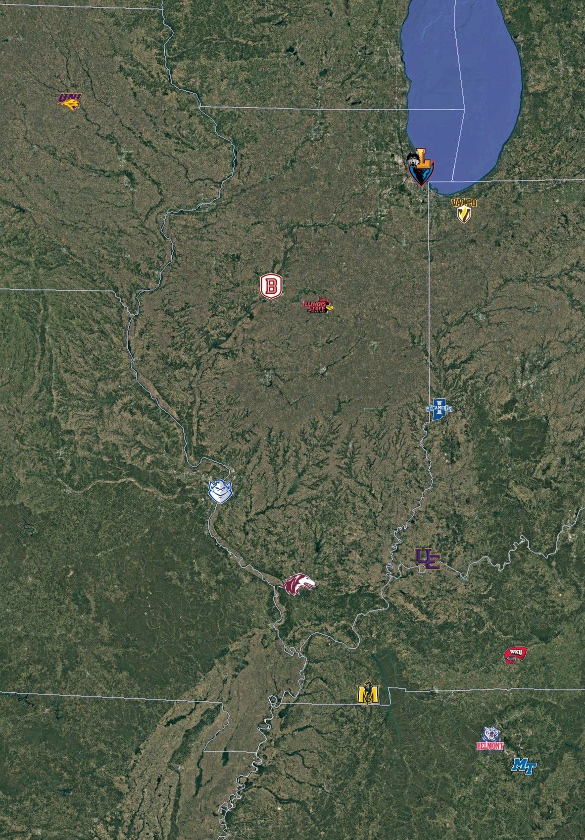 Now this is a basketball conference. And that basketball conference is basically the MVC, with a few additional neighbors. Notice that Drake just barely misses out on being in this league. This information will be important later. Also, obligatory lol DePaul.