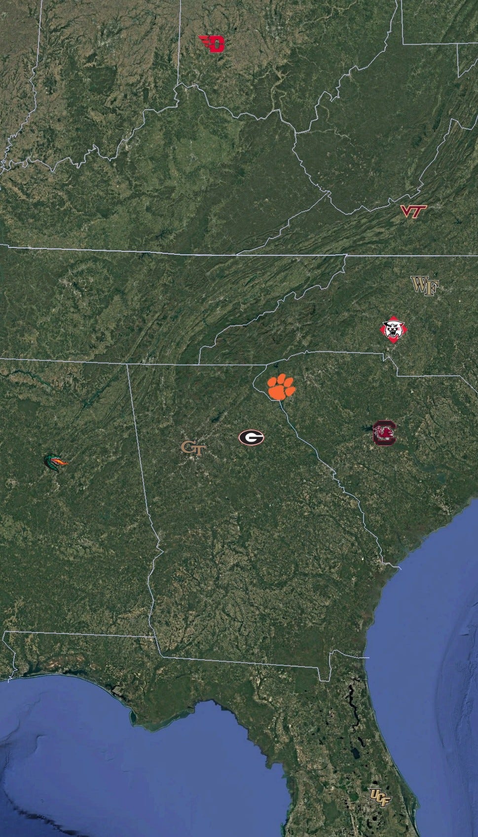 Clemson, Davidson, Dayton, Georgia, Georgia Tech, South Carolina, UAB, UCF, Virginia Tech, Wake Forest