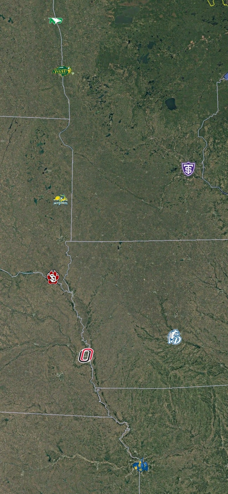 Drake, Kansas City, Omaha, North Dakota, North Dakota State, South Dakota, South Dakota State, St Thomas