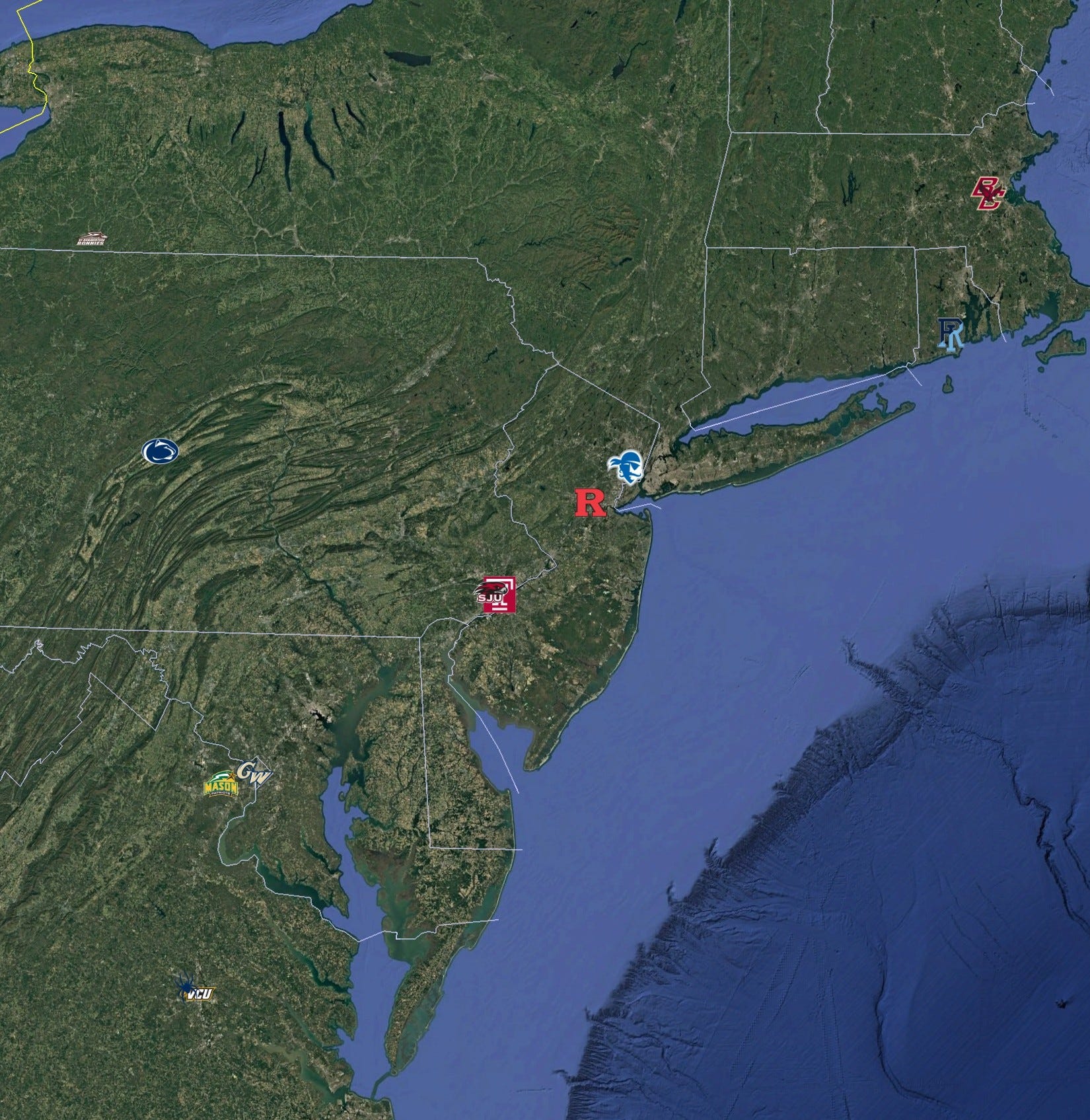 Boston College, George Mason, George Washington, Penn State, Rhode Island, Richmond, Rutgers, Saint Joseph’s, Seton Hall, St Bonaventure, Temple, VCU