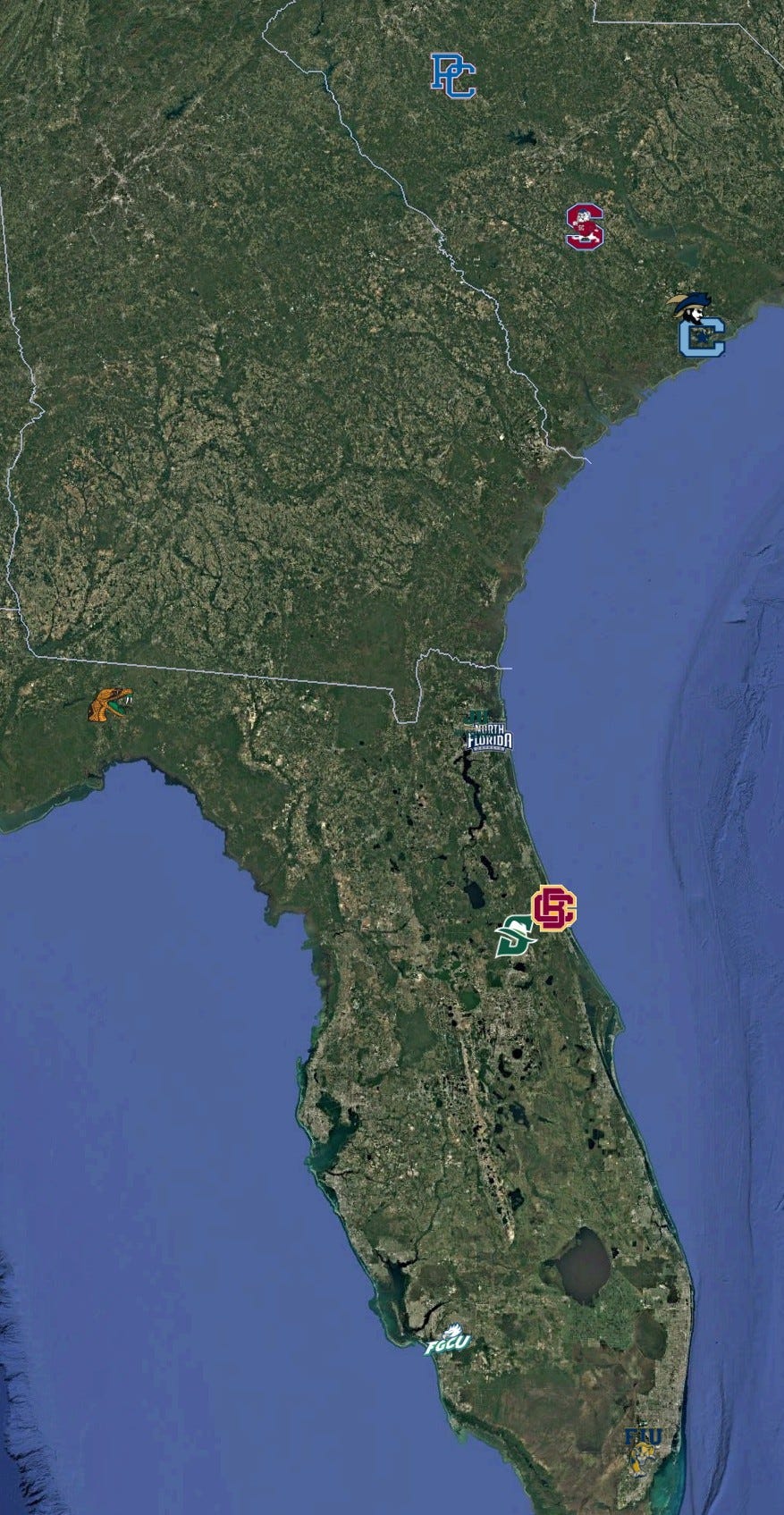 Bethune-Cookman, Charleston Southern, FIU, Florida A&M, Florida Gulf Coast, Jacksonville, North Florida, Presbyterian, South Carolina State, Stetson, The Citadel