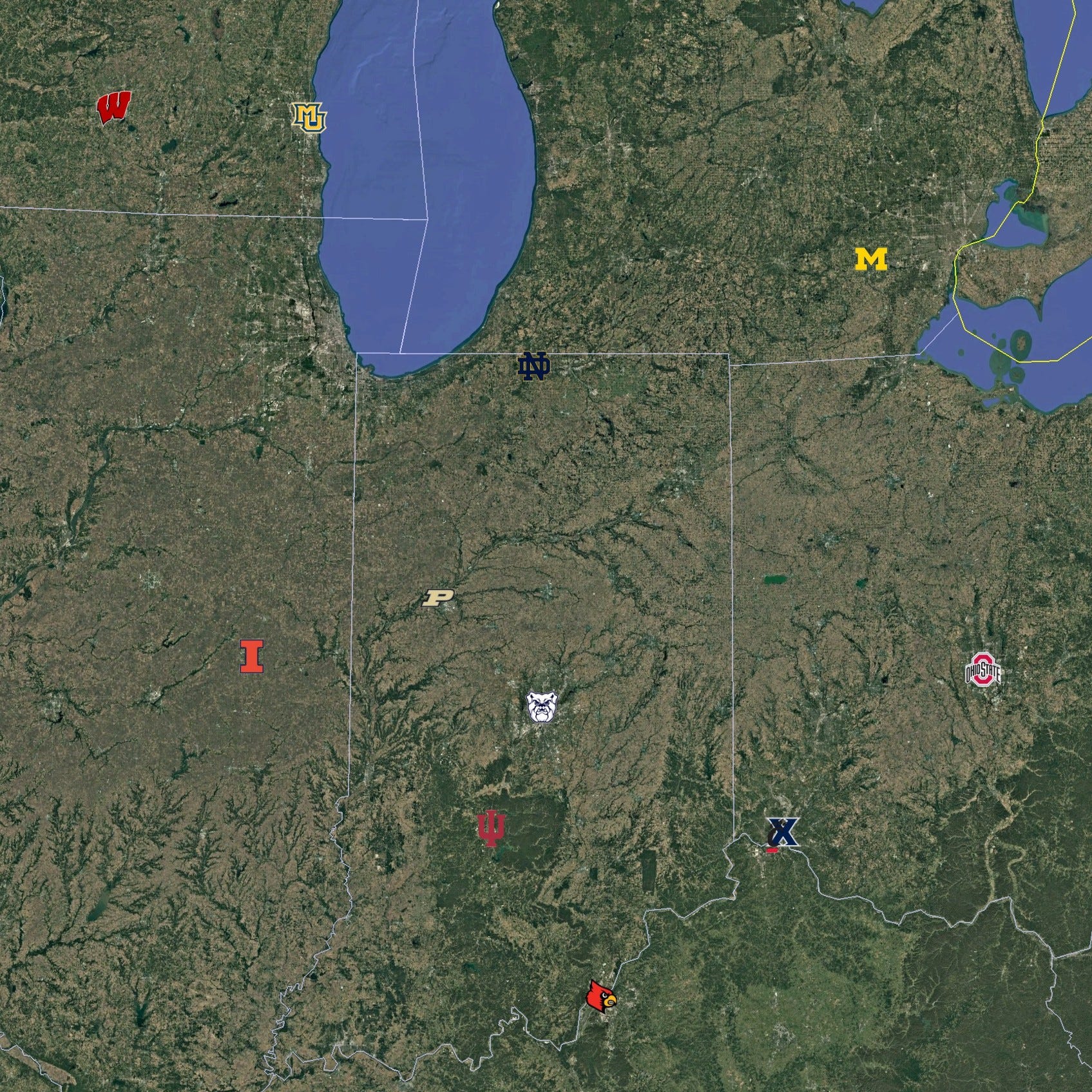 Butler, Cincinnati, Illinois, Indiana, Louisville, Marquette, Michigan, Notre Dame, Ohio State, Purdue, Wisconsin, Xavier