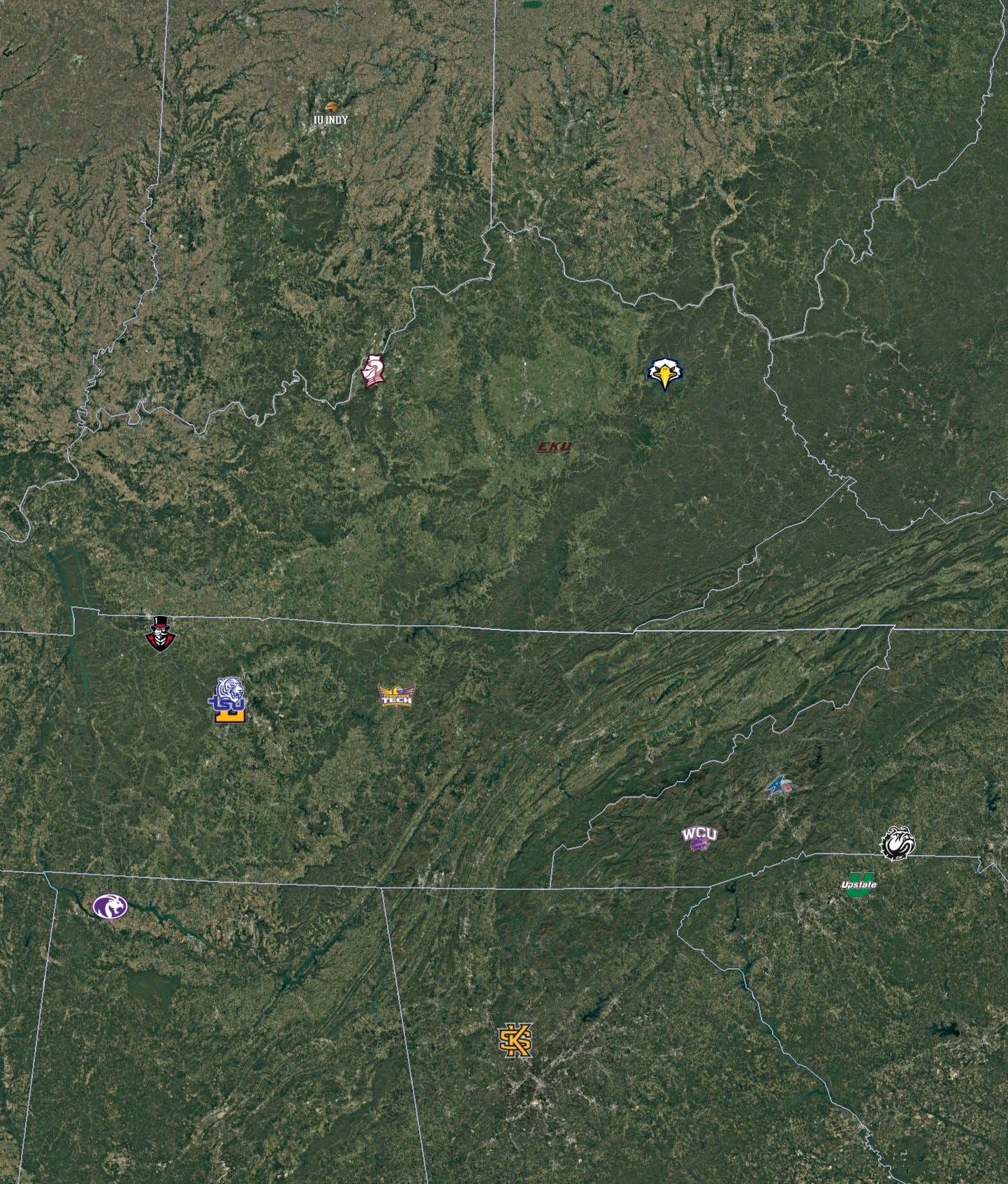 Yes, this is my third conference name that’s a play on “Mountain West”—I’d like to see you come up with 32 reasonable/funny conference names. This league’s footprint is extremely similar to the Mountain Tops’, making it almost feel like a lower division of that league. Given the recent trajectories of the teams here, GCU probably dominates this conference.